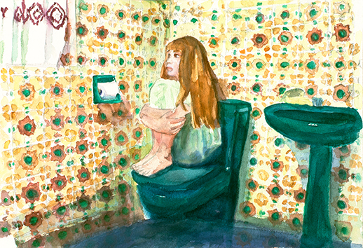 Fremder Besuch 2, Aquarell, Bleistift und Gouache auf Papier, 2020, 22 x 31 cm